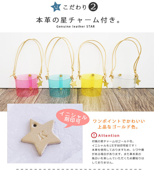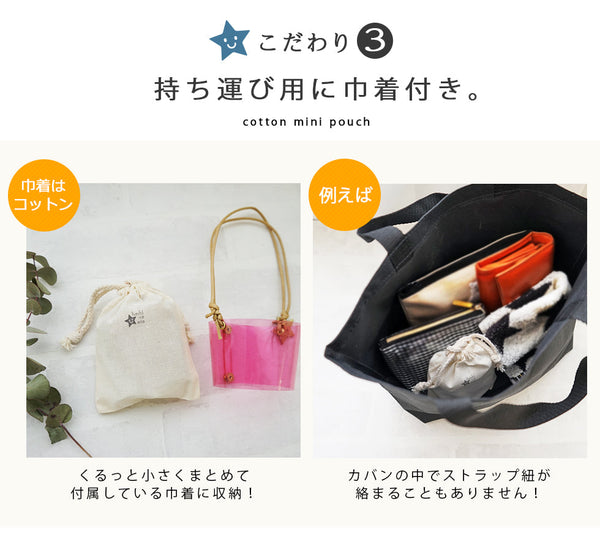 | 素材 | 本体:PVC ストラップ:コットン 星チャーム:牛革 巾着:コットン100% |