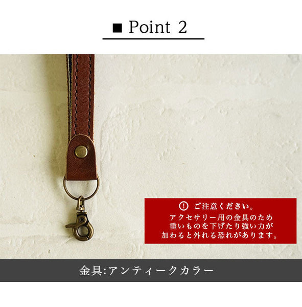| 素材 | 本体:牛革(ヌメ革・栃木レザー)厚さ2.0mm ※裏生地はあり 金具:アンティークカラーです |
