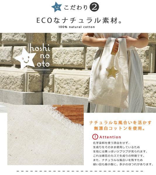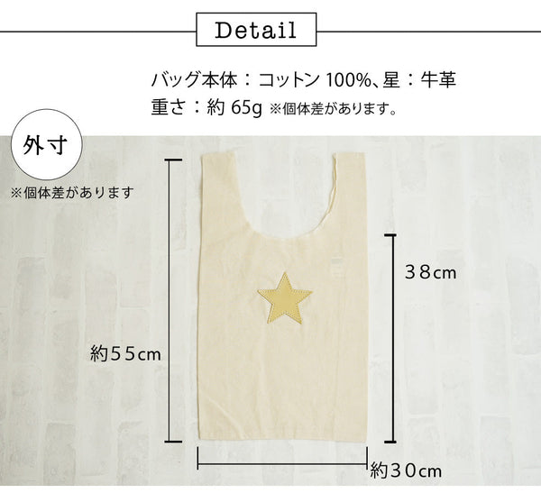 | 素材 | バッグ本体:コットン100% 4.7オンス(薄手です) 星:牛革(姫路レザー) |