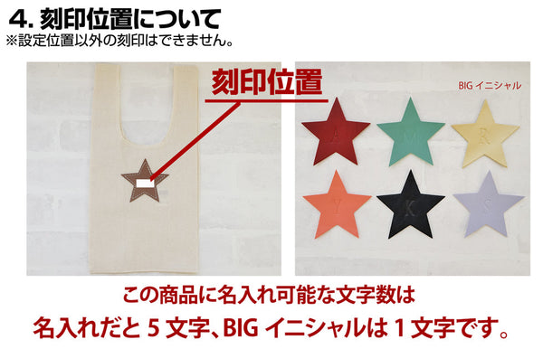 | 機能 | 星部分に名入れ可能 (BIGイニシャル1文字or名入れ5文字まで) |