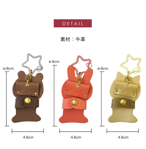 | サイズ | ●本体 ・くま・ねこ本体:約H8cm・W4.6cm ・うさぎ本体:約H9cm・W4.6cm ●キーカバー H2cm・W2.3 cm(金具内側) |