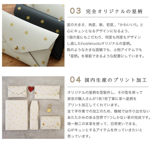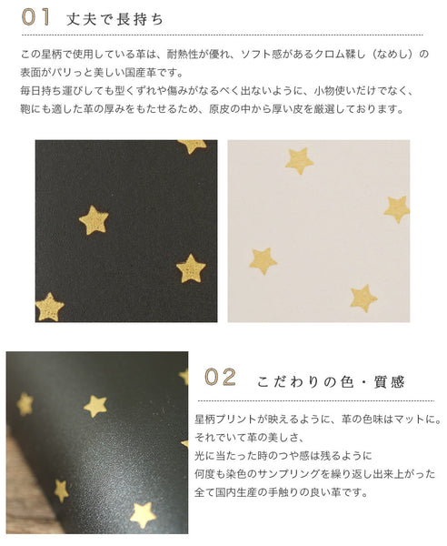 ●星柄は、牛革にプリントをしておりますため、傷や擦れなどで柄が剥がれる場合もございます。繊細な商品のためお取り扱いにはご注意ください。