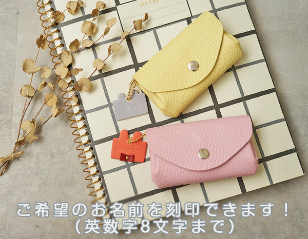 一点ずつ職人さんによる刻印で、出来る限り丁寧な仕上がりを心がけておりますが、手作業による天然皮革への刻印ため、スペルの絶対水平はお約束しておりません。