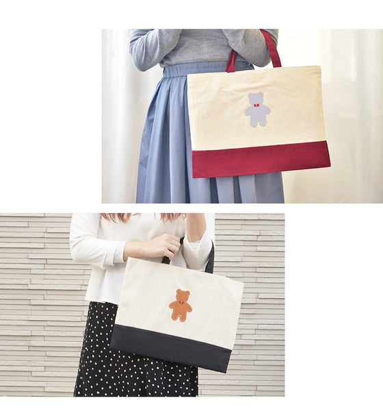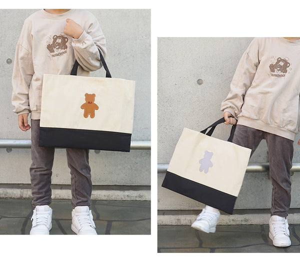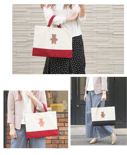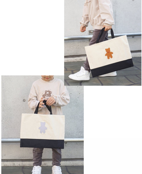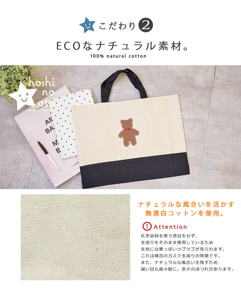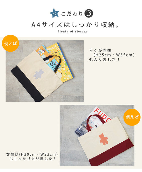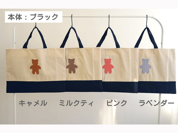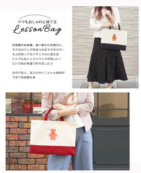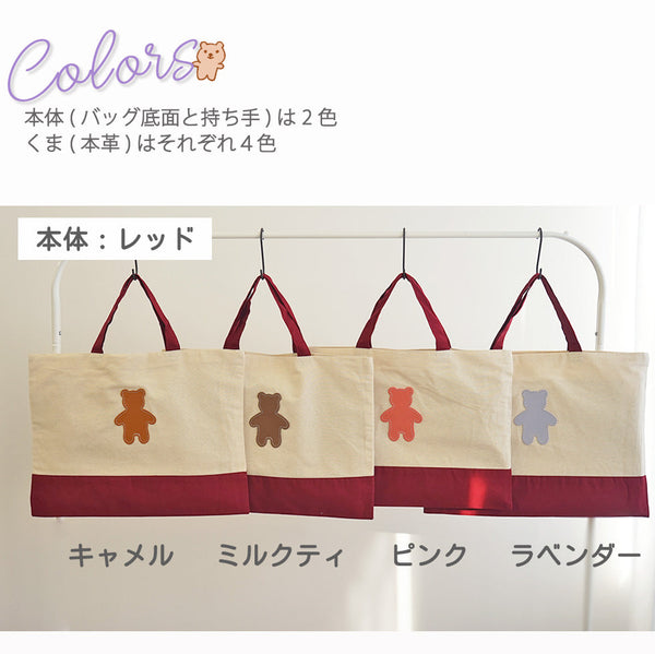 | コメント | コットン生地のかわいいレッスンバッグ 大人が持ってもおしゃれなトートバッグです★ かわいい くまちゃん 蝶ネクタイ を着けることもできます! おしゃれ なクマさん♪ くま部分は本革で 名入れもできるので、 ちょっとしたプレゼントや 入学や入園の記念品ギフト・プレゼントにお勧めです★ 内側にポケットがついているので小さいものを収納に便利! 男の子・女の子 カラーバリエーションは8タイプ♪ |