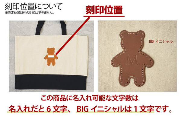 BIGイニシャルでアルファベット1文字か、通常の名入れ型押し6文字どちらかお選びいただけます。