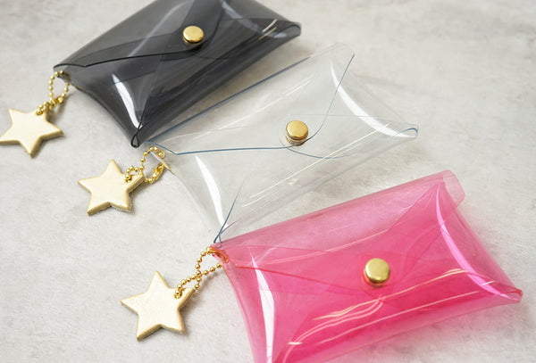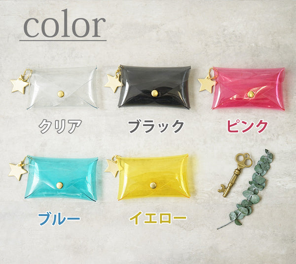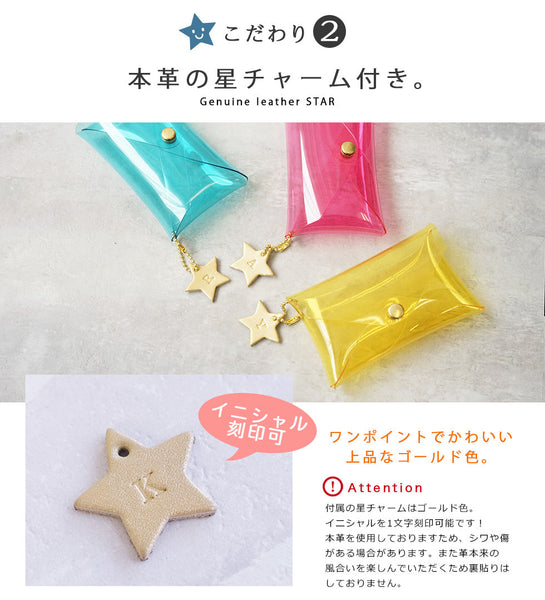 | コメント | 大人かわいい クリア素材のカードケース 国内生産にこだわった完全オリジナル 名刺入れ・カードケース・お財布としても○ 使いやすい シンプルなデザインに仕上げています。 イニシャル刻印ができる星チャーム付き★ プレゼント・ギフトにも♪ |