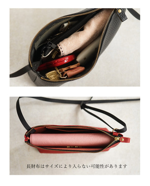 ●柔らかい革を使用しておりますため、重いものを入れると革が伸びる可能性がございます。ご注意ください。