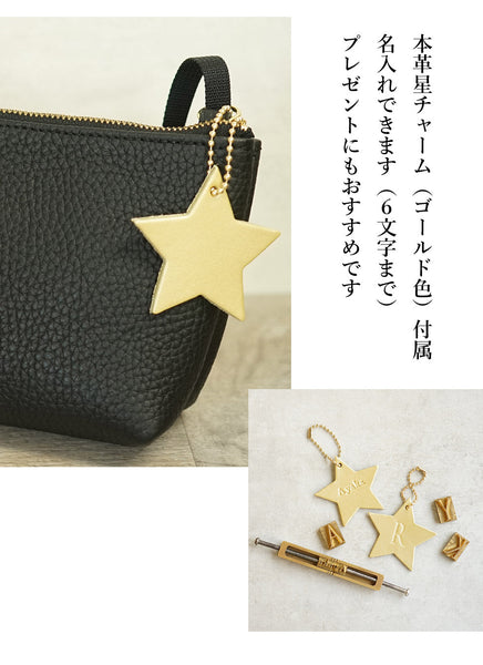| 素材 | bag本体:牛革 ストラップ紐:ナイロン 星チャーム:牛革(約縦5.5cm・横5.5cm) ※裏地なし |