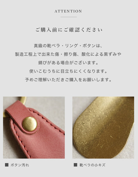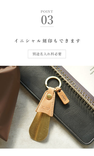 | コメント | おしゃれな真鍮のシューホーン キーリングとして使いやすい2重リングも付属 植物タンニンなめしのヌメ革で、しっとり手に馴染む 日本製 のレザーを使用! 使い始めは表面が白っぽいですが、徐々に表面のワックスが革の内部に染み込み、輝くほどの艶が出てくると同時に手触りもなめらかになってきます。 メンズ ギフト にお勧め★ イニシャル刻印 もできるので、誕生日 記念日 バレンタイン クリスマス 父の日 などのプレゼントに♪ かわいいカラーもあり!レディース・女性へのギフトにも♪ |