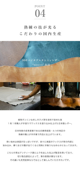 ・本革は天然素材のため、動物が持っていた傷やシワがあります。また表面加工を行っていないため、製造工程でできた小さい傷がある場合があります。