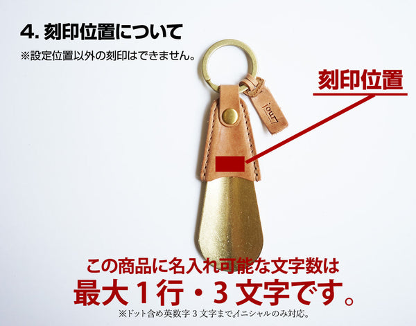 一点ずつ職人さんによる刻印で、出来る限り丁寧な仕上がりを心がけておりますが、手作業による天然皮革への刻印ため、スペルの絶対水平はお約束しておりません。