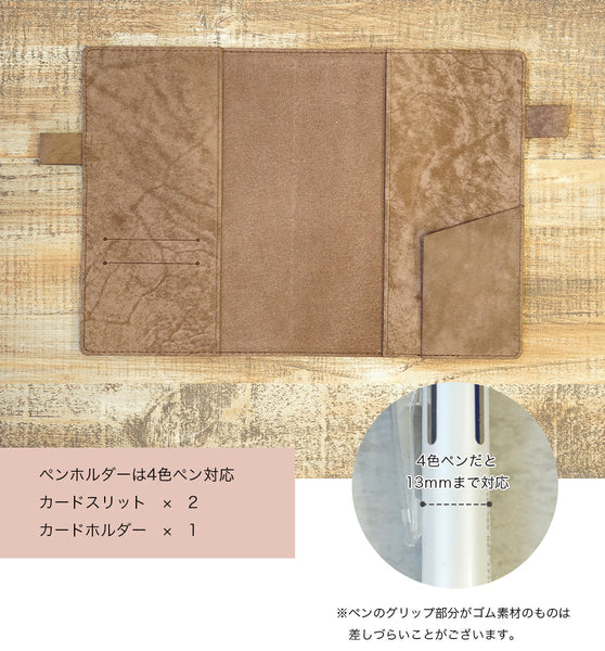 | コメント | おしゃれなイタリアンレザー B6サイズ ペンホルダー×2 でバタフライストッパーに! 手帳が開かない! 縫製はすべて国内生産で丁寧に作っています。 エイジングが楽しめる本革 長くお使いいただけます。 |