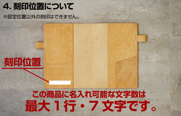 一点ずつ職人さんによる刻印で、出来る限り丁寧な仕上がりを心がけておりますが、手作業による天然皮革への刻印ため、スペルの絶対水平はお約束しておりません。