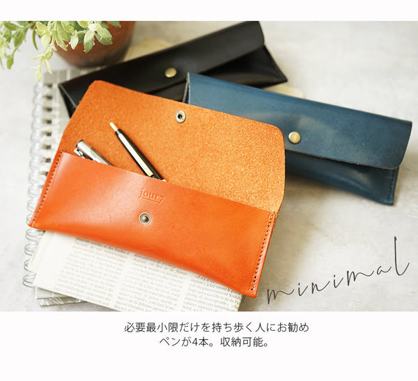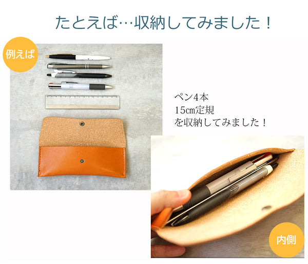 | コメント | シンプルに おしゃれに 必要最小限のペンを持ち歩く人にお勧めペンケース ペンは4本程度収納可能 15cm定規も入ります。 リーディンググラス など メガネケースとしても◎ 名入れ刻印@もできるので、ギフト・プレゼントにも♪ メンズ・レディースに |