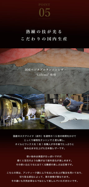 ・本革は天然素材のため、動物が持っていた傷やシワがあります。また表面加工を行っていないため、製造工程でできた小さい傷がある場合があります。