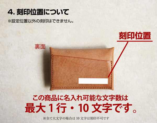 一点ずつ職人さんによる刻印で、出来る限り丁寧な仕上がりを心がけておりますが、手作業による天然皮革への刻印ため、スペルの絶対水平はお約束しておりません。