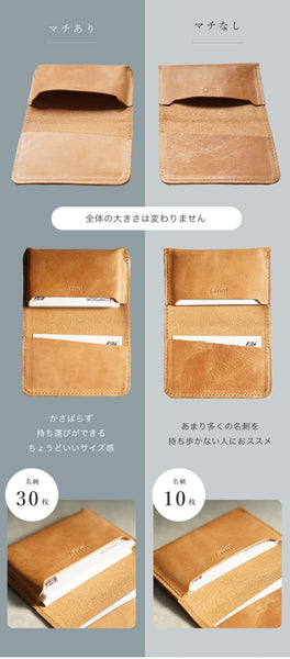 | 機能 | マチあり:名刺30枚程度収納可能 マチなし:名刺10枚程度収納可能 |