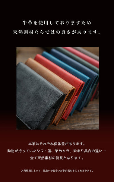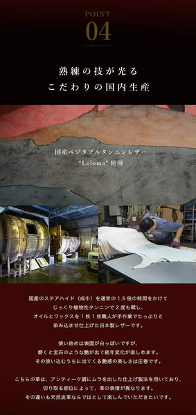 ・本革は天然素材のため、動物が持っていた傷やシワがあります。また表面加工を行っていないため、製造工程でできた小さい傷がある場合があります。