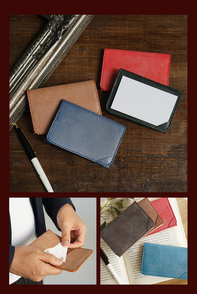 ポケットに収まる 薄型サイズ おしゃれな 本革 名刺入れ 植物タンニンなめしのヌメ革で、しっとり手に馴染む 日本製 のレザー 使い始めは表面が白っぽいですが、徐々に表面のワックスが革の内部に染み込み、輝くほどの艶が出てくると同時に手触りもなめらかになってきます。 名入れ可能なので、ギフト・プレゼントにもお勧めです! カップル・夫婦 記念日や誕生日にも、同僚への送別品や餞別品、周年記念品・ノベルティとしてもお勧め。 |