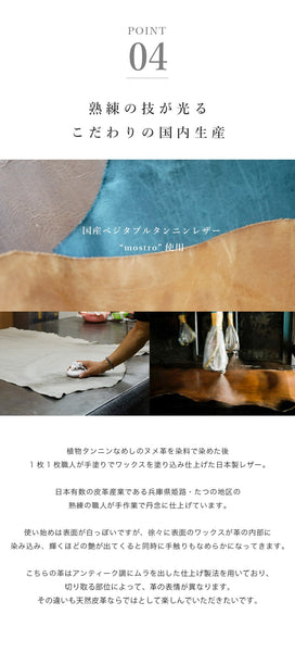 ・本革は天然素材のため、動物が持っていた傷やシワがあります。また表面加工を行っていないため、製造工程でできた小さい傷がある場合があります。