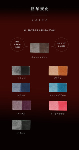 ・本革は天然素材のため、動物が持っていた傷やシワがあります。また表面加工を行っていないため、製造工程でできた小さい傷がある場合があります。