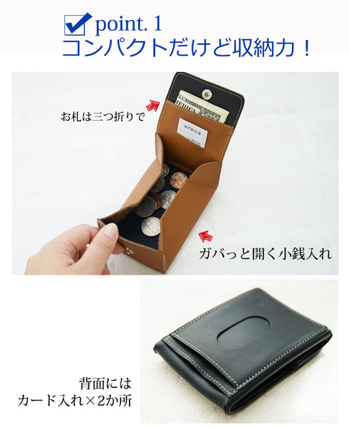| 機能 | 小銭入れ×1 札入れ×1 裏面にカード入れ×2 |
