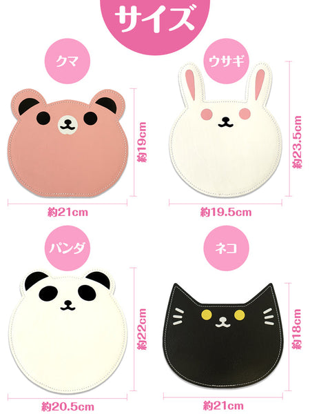 | サイズ | くま:縦19cm×横21cm うさぎ:縦23.5cm×横19.5cm ねこ:縦18cm×横21cm パンダ:縦22cm×横20.5cm |