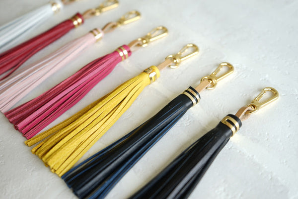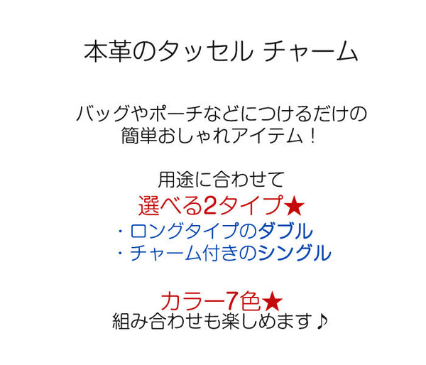 | コメント | 国産の本革★ おしゃれ・かわいいタッセル・フリンジ♪ 取り付け方も簡単! 【ロングのダブル、チャームのシングル】2タイプ! プレゼントやギフトに最適です★ |