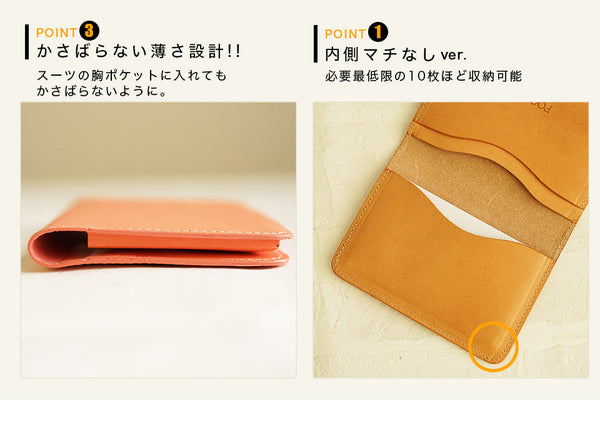| 機能 | 3ポケットあり、名刺を分けて収納できます。 選べるマチの種類! |