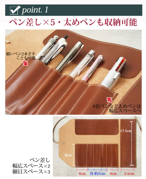 | コメント | おしゃれ な ロールペンケース 国産のヌメ革(栃木レザー)使用 エイジングが楽しめるしっとりした本革です 神戸で1つずつ製作した 日本製 ビジネス・プライベートなどシーンを問わず活躍♪ メンズ・レディース 大人 高校生 社会人 大学生 名入れ刻印も可能なので、プレゼント ギフト 送別品 記念品 にも最適です! |