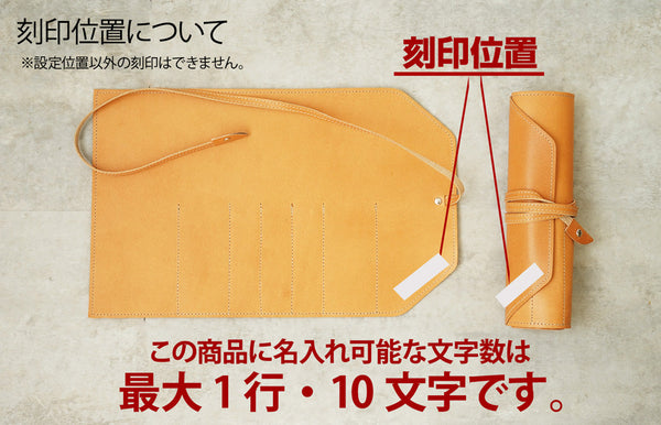 一点ずつ職人さんによる刻印で、出来る限り丁寧な仕上がりを心がけておりますが、手作業による天然皮革への刻印ため、スペルの絶対水平はお約束しておりません。