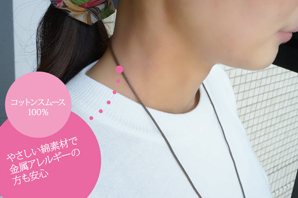 | コメント | チェーン部分はコットン100% 金属アレルギーの方にもおすすめです! 長さ調節機能もあり! 軽くて便利です! |