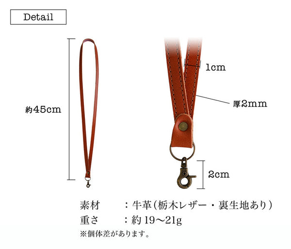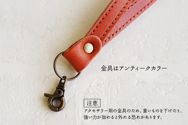 | 素材 | 本体:牛革(ヌメ革・栃木レザー)厚さ2.0mm ※裏生地はあり 金具:アンティークカラーです |