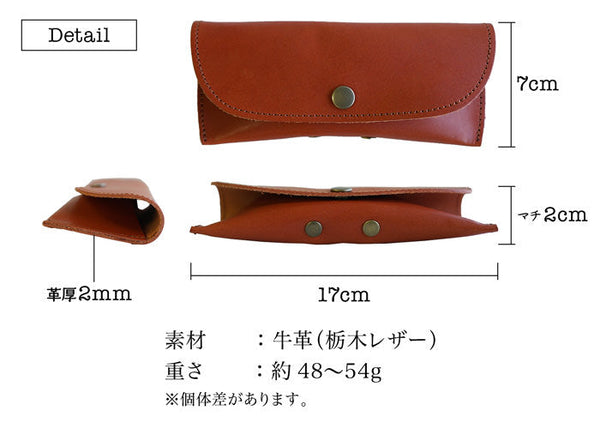 | 素材 | 本体:牛革(ヌメ革・栃木レザー)厚さ2.0mm ※裏生地なし 金具:アンティークカラーです |