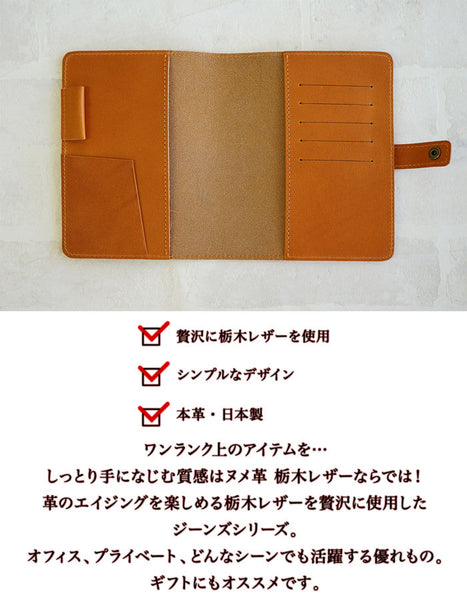 | 素材 | 本体:牛革(ヌメ革・栃木レザー)厚さ2.0mm ※裏生地なし 重さ:120g ※個体差あり |