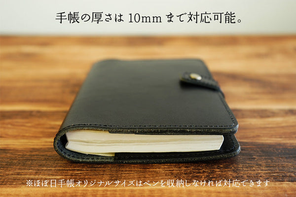 ●ほぼ日手帳オリジナルサイズは、手帳の厚み(約1.4cm)があるため、ベルト部分がきつくなります。また、細いペンのみ対応可能でペンホルダーにペンを挿すとベルトが閉まらない恐れがあります。サイズの確認をお願いします