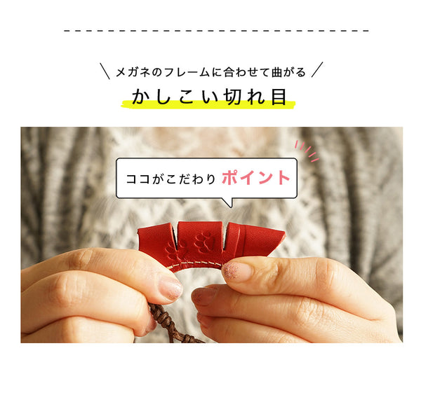 | コメント | スタイリッシュなデザインでメンズ・レディースに★ ヌメ革製のネックレス型メガネホルダー かわいい猫デザイン! ネックストラップはお肌にやさしいコットンスムース(綿100%) 金属チェーンが苦手な方にもおすすめ★ |