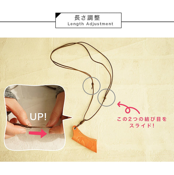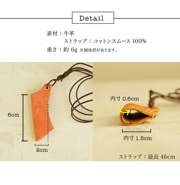 | 素材 | 本体:牛革(ヌメ革) 厚さ2.0mm ネックストラップ:コットンスムース(綿100%) |
